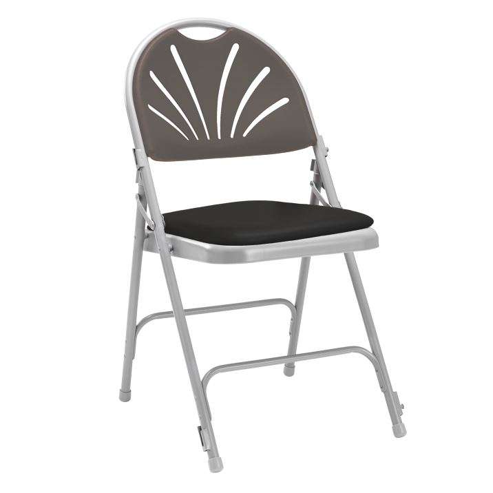 This folding chair has been designed with a deep contoured back and with its vinyl upholstered seat provides exceptional comfort and support. The back incorporates a convenient hand hold to make handling when setting up and clearing so much easier. With a twin double riveted cross-brace for extra strength and available in a choice of three vinyl colours, this is the “go to” folding chair for any performance, meeting or function. Includes a link for securing rows of chairs.