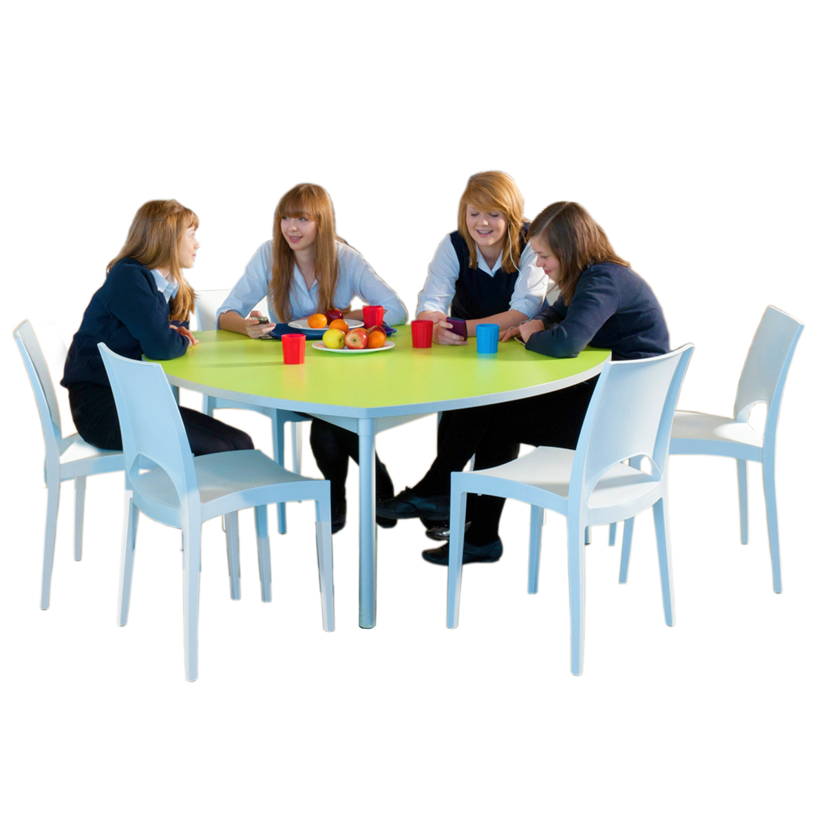 This unique shield table provides plenty of space for dining, socialising, collaborating and working in schools, offices and public spaces.